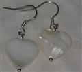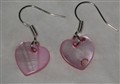 Silvertonade örhängen med hjärtan av snäcka. Rosa och lite mindre i storlek än föregående bild. Längd: ca 3 cm .bredd ca 1,2cm (hjärtat)