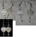 Vackra örhängen av vita snäckskal och klara ab glas pärlor. Längd: ca 5,5cm .bredd ca 1,5cm (hjärtat