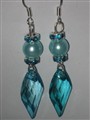 Läckra örhängen med blå glaspärla och kristallrondeller.Silvertonade med akrylik hänge.