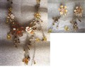 Ett härligt lyxigt set med porslinsliknande blommor kedjor o stenar helt osymmetriskt.