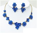 Guldtonat halsbands set med blå emaljr och kristaller.