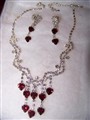 Röda hjärtan på silvertonad kedja. Vit strass.