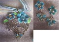 Ett läckert halsband spindelnät o spindel med emaljerade turkosa blommor.