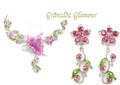 Stor fjäril och blommor gnistrande set i silverton.Halsbandet är reglerbart.