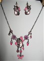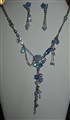 Halsbands set i blå toner med porslins liknande blommor , resin , emaljerade berlocker och kristaller.