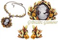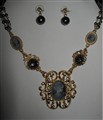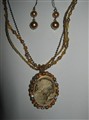 Cameo set med im pärlor i svart grått. Guldtonad metall.