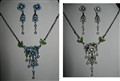 Ett läckert emaljerat set i med grönt. Blommor och gnistrande stenar.