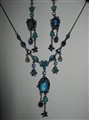Kedjan består av cameon im pärlor och avslutad med 3 raders kedja med im pärlor i svartgrå.